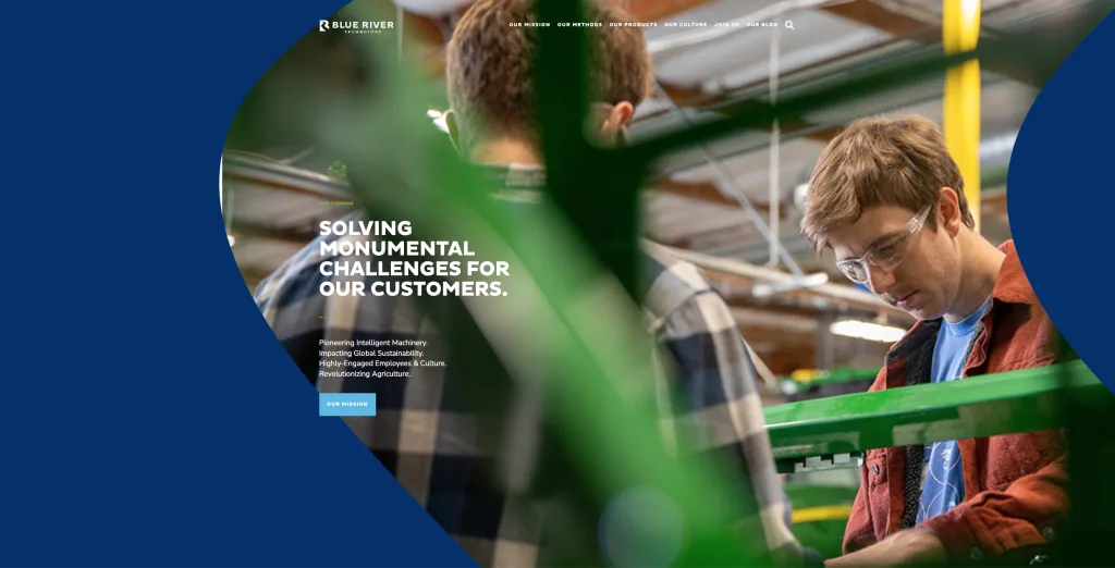 Blue River Technology’s website showcases a sleek and modern design, emphasizing innovation in agricultural technology. The site uses a green and white color palette, aligning with its agricultural focus. It offers easy navigation with clear sections on technology, products, and company information. However, the site scrolls horizontally, rather than the normal vertical scroll. The use of dynamic imagery and video content effectively demonstrates their technology in action. The website is also informative, providing detailed insights into their products and impact on sustainable agriculture.
