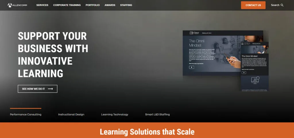 AllenComm’s website presents a sophisticated and user-centric design, highlighting their expertise in corporate training and eLearning solutions. The site effectively combines a professional appearance with interactive elements, showcasing a wide range of training services, from onboarding to leadership development. Its clear layout and engaging content make it easy for visitors to explore and understand their offerings, emphasizing AllenComm’s commitment to innovative and effective learning solutions.