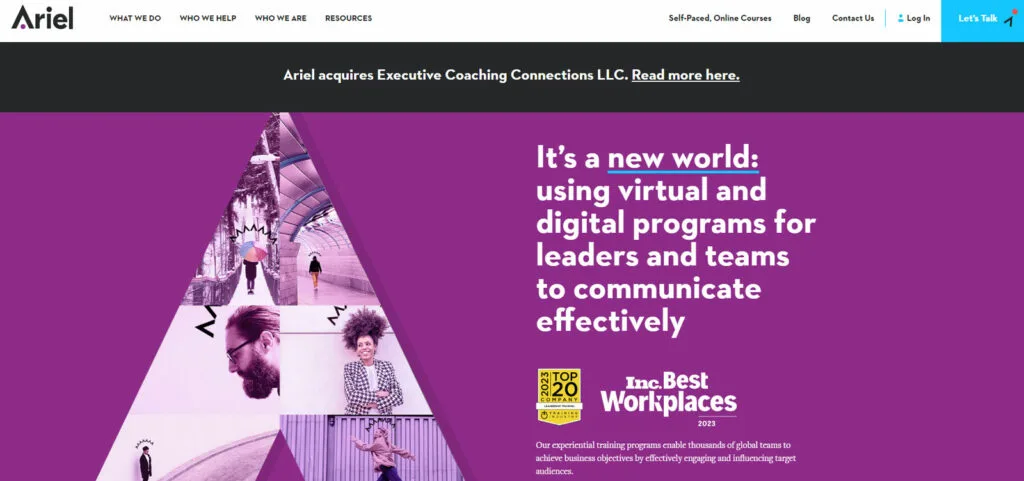 The Ariel Group’s website presents a polished and engaging interface, emphasizing their expertise in leadership training and development. The design is professional yet inviting, with a clear focus on their diverse training offerings, including executive coaching, leadership and presence, and strategic communication skills. The site effectively uses testimonials and case studies to illustrate the impact of their programs, making it a valuable resource for professionals and organizations looking to enhance leadership and communication abilities.