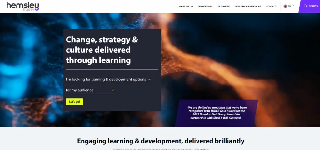 Hemsley Fraser’s website features a bright and inviting design, reflecting their focus on engaging and transformative learning and development programs. The site is intuitively structured, making it easy for visitors to explore a wide range of training courses and services. Notable are the vibrant visuals and interactive elements that enhance the user experience, effectively showcasing their expertise in creating impactful learning experiences for various professional needs.