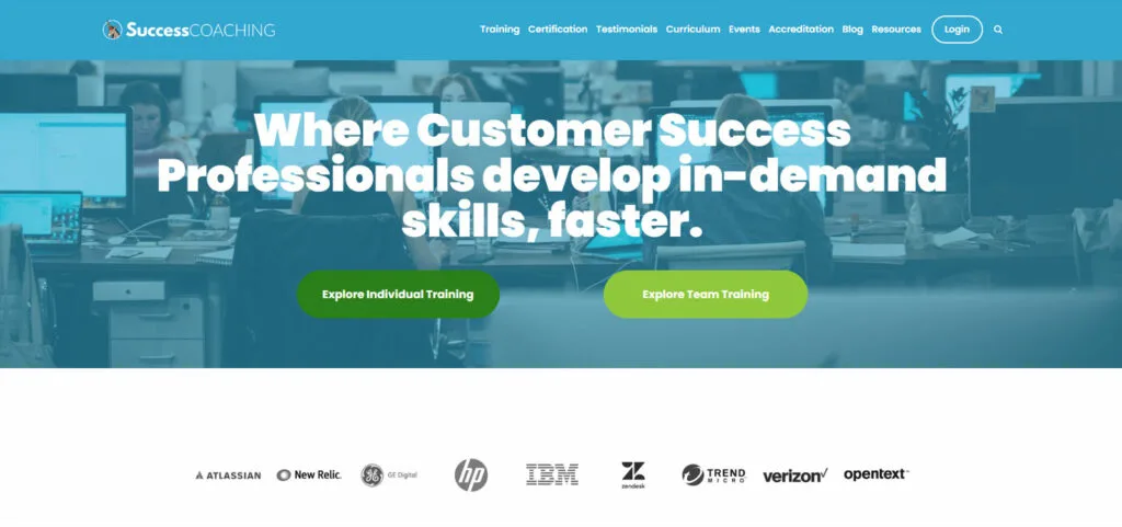 The SuccessCOACHING Business Transformation Website provides a professional and engaging platform dedicated to Customer Success Manager (CSM) training. Its clear, structured layout and easy navigation make it a standout example of Business Transformation Websites, showcasing various training programs and certifications. The use of concise, impactful content alongside inviting visuals effectively communicates their expertise in delivering industry-relevant skills. Additionally, the inclusion of resources and testimonials enhances credibility and appeals to professionals looking to advance their customer success careers. This design not only inspires but also serves as an invaluable resource for individuals seeking corporate training design ideas and professional development inspiration within the realm of business transformation.