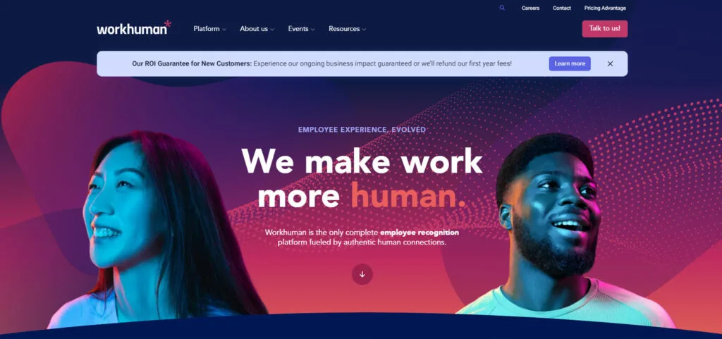 The Workhuman website boasts a modern and inspiring design that mirrors its commitment to human-centered workplace solutions. Its vibrant colors and captivating visuals foster a warm and inviting atmosphere. The site’s user-friendly layout, clear navigation, and concise content effectively convey their mission of fostering inclusive and productive work environments. The inclusion of testimonials and success stories adds a personal touch, emphasizing the real-world impact of their services. This design not only inspires but also serves as a valuable resource for those seeking organizational consultancy inspiration and diversity, equity, and inclusion (DEI) design ideas.